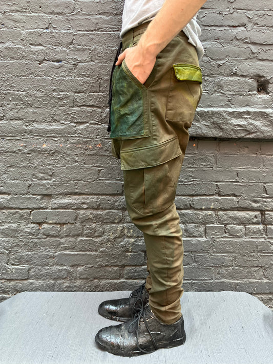 FW23 || INSERT ZIPPER / MOONSTAR LEATHER || STRETCH COTTON PANTS - COMBAT GREEN