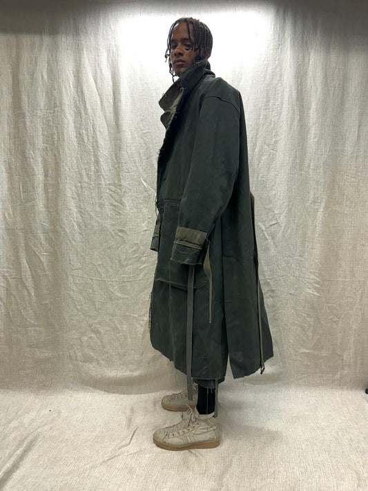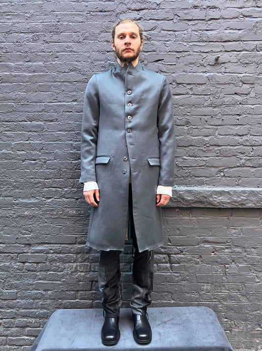 FW23 || PEAKED LAPEL LONG COAT || HAND-STITCHED GREY