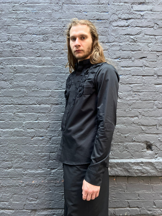 FW23 || ROMANTIC FRONT ROSES DRESS SHIRT || 100% COTTON - BLACK