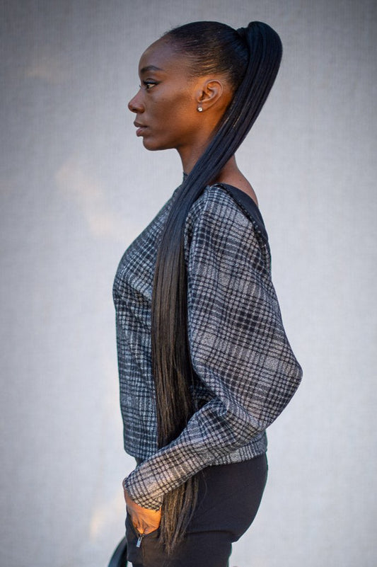 FW24 || BAT WING KNIT TOP || GREY + BLACK PLAID