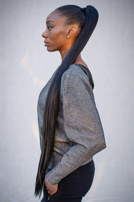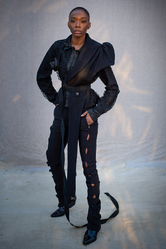 FW24 || ASSYMETRIC LAPEL TOP || BLACK WOOL