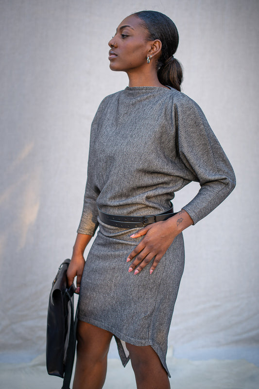 FW24 || BAT WING KNIT DRESS || GREY COTTON