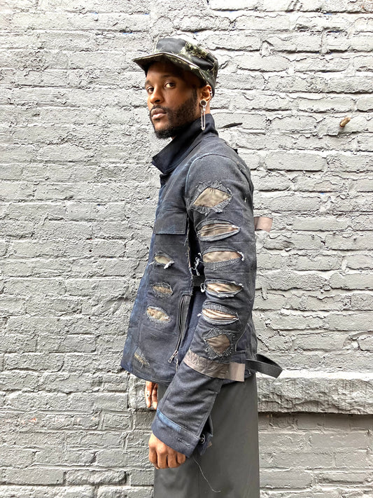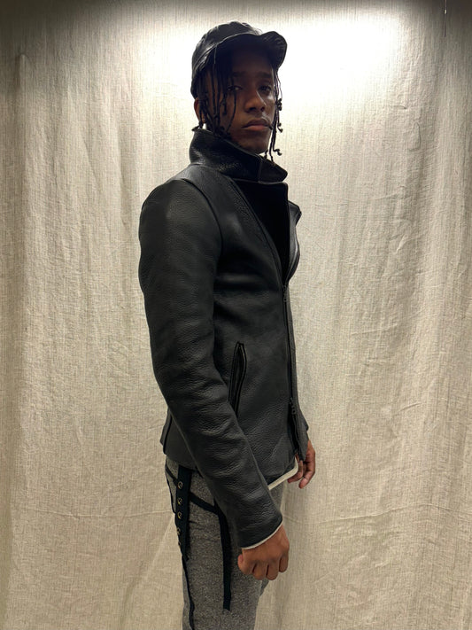FW24 || ASYMMETRIC ZIP BIKER JACKET || BLACK BISON