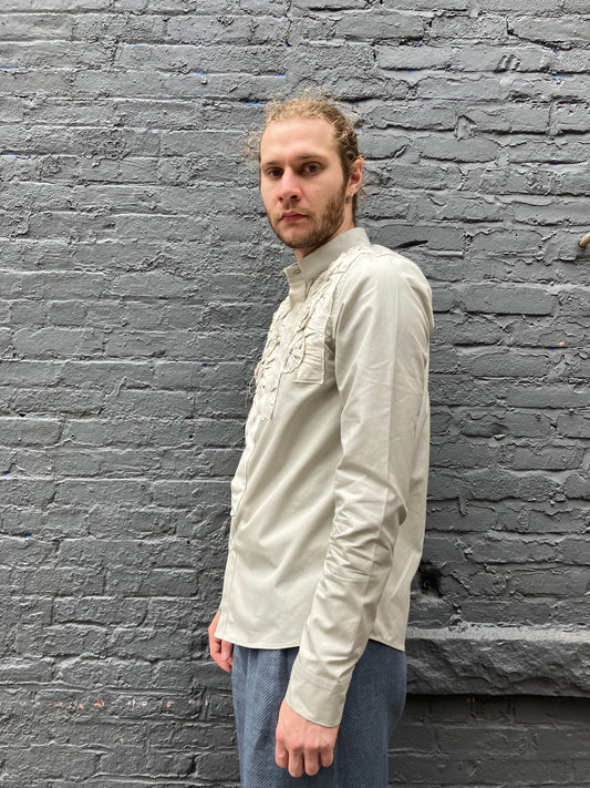 FW23 || ROMANTIC FRONT ROSES DRESS SHIRT || 100% COTTON - BEIGE