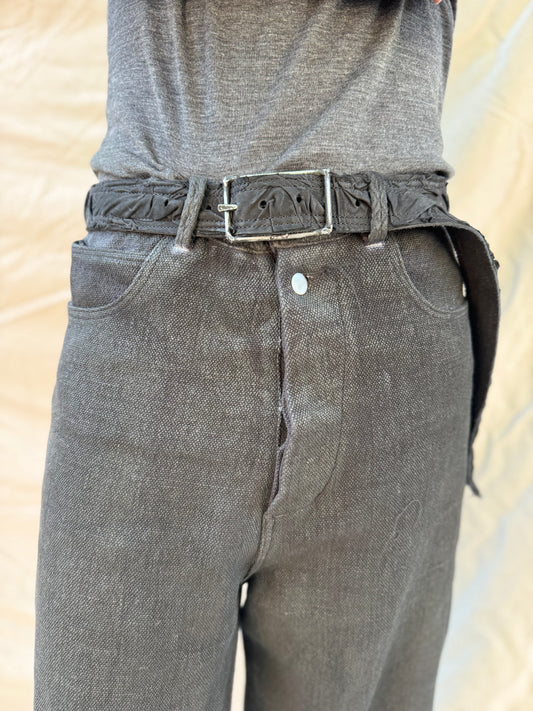 FW25 ||BUTTON POCKET GODDE PANTS|| COTTON - LINEN WASHED BLACK