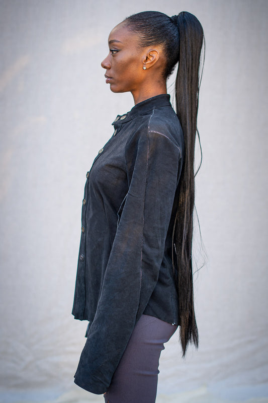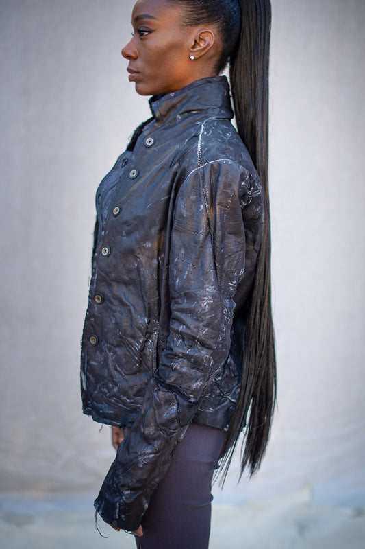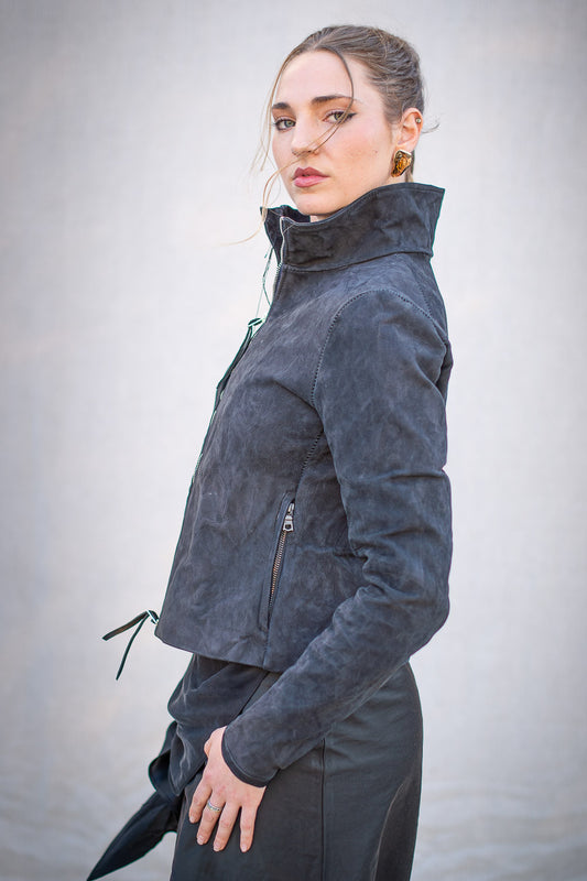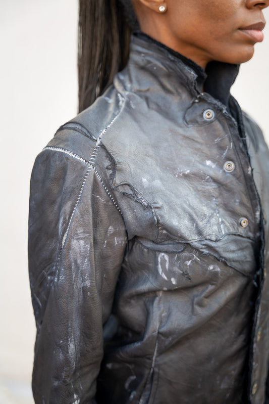 FW24 || MINIMALIST LEATHER JACKET || BLACK BONDED CALF