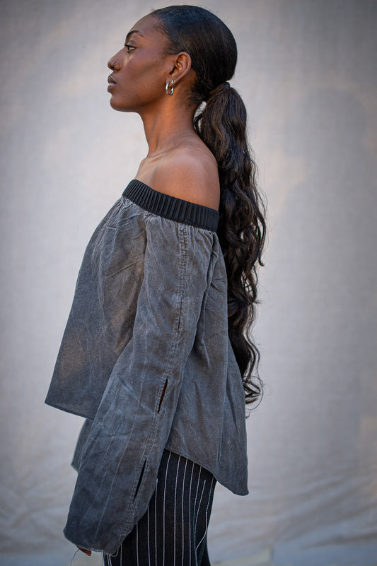 FW24 || MANI TAILS COTTON BLOUSE || WASHED BLACK