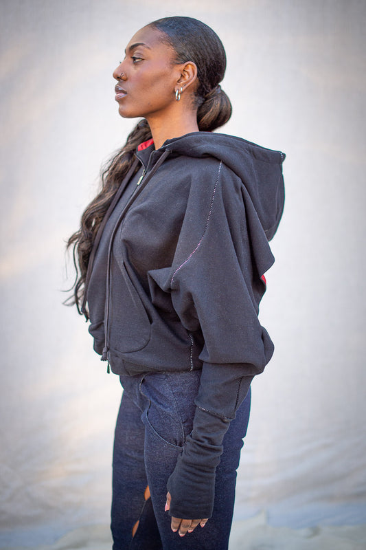 FW24 || INVERTED HEART DOUBLE HOODIE || BLACK