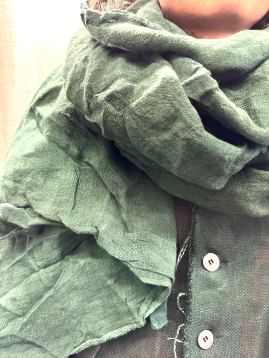 FW24 || LINEN DOUBLE WIDTH SCARF || GANJA GREEN