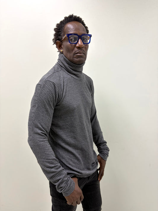 FW25 ||HIGH NECK FAULTED FAULTED SHOULDER TOP || 100% COTTON||GREY