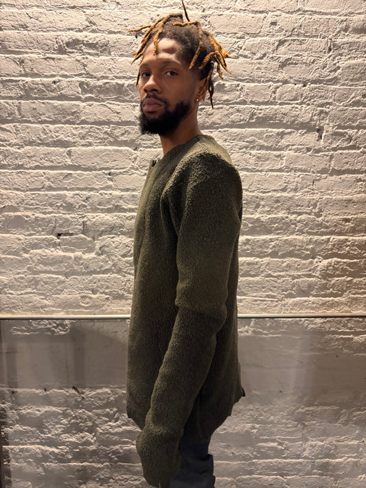 FW25|| ASYMMETRIC ZIPPER POCKET "HOLY" PULLOVER ||WOOL || COMBAT GREEN
