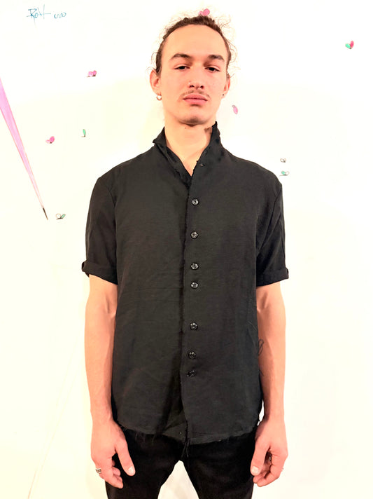 SS26 || PROTOLOGICAL ARCHETYPE SHORT SLEEVE SHIRT || BLACK || LINEN + RAYON