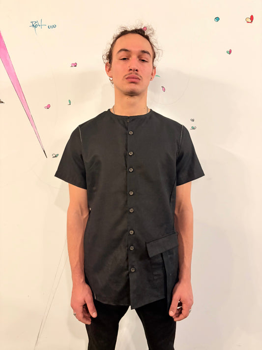 SS26 || COLLARLESS 3 PANEL BACK VENT SHIRT || SHORT SLEEVE - BLACK