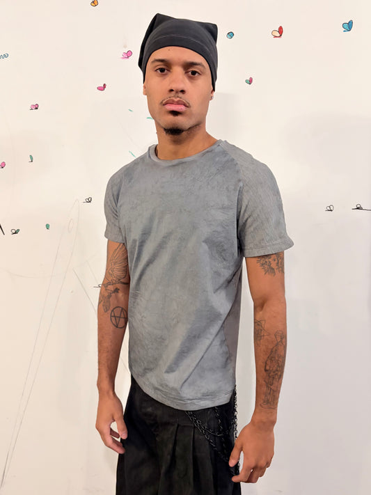 SS26 ||SYMMETRICAL SHORT SLEEVE 3DT || GREY OVERDYED COTTON