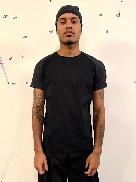 SS26 ||SYMMETRICAL SHORT SLEEVE 3DT || BLACK OVERDYED COTTON