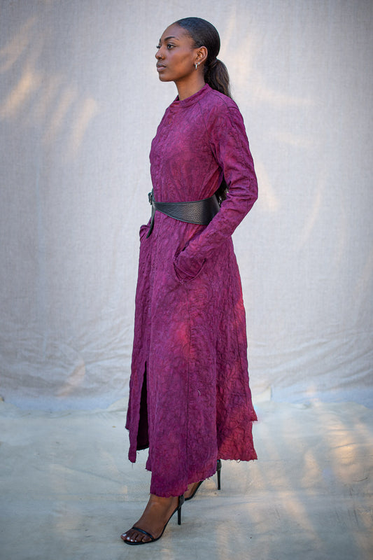 FW24 || RAGLAN FRONT DRESS || RED STRETCH BROCADE
