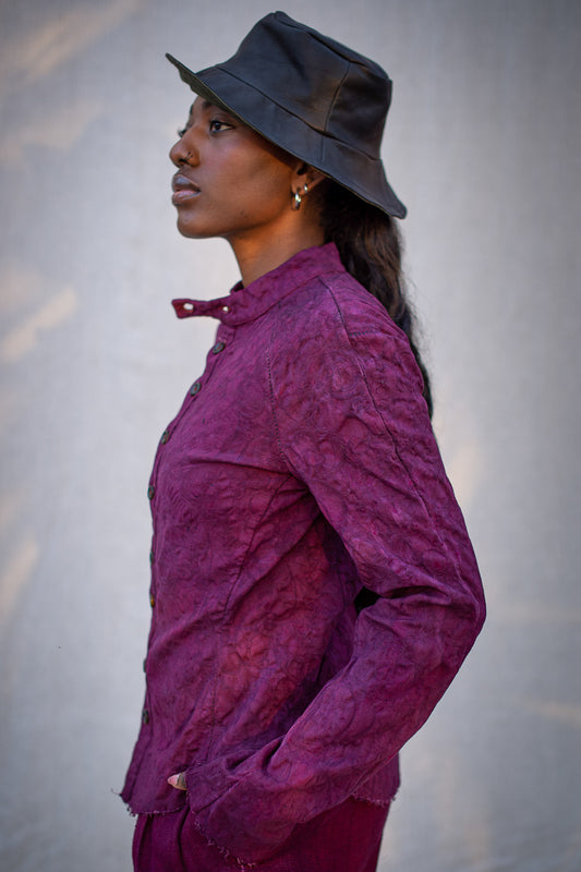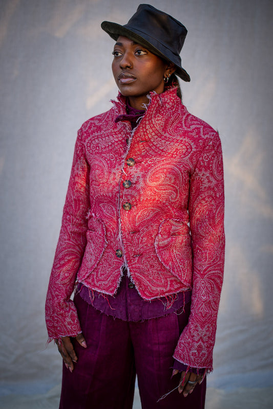FW24 || OVERLOCKED RAGLAN FRONT TOP || RED STRETCH BROCADE