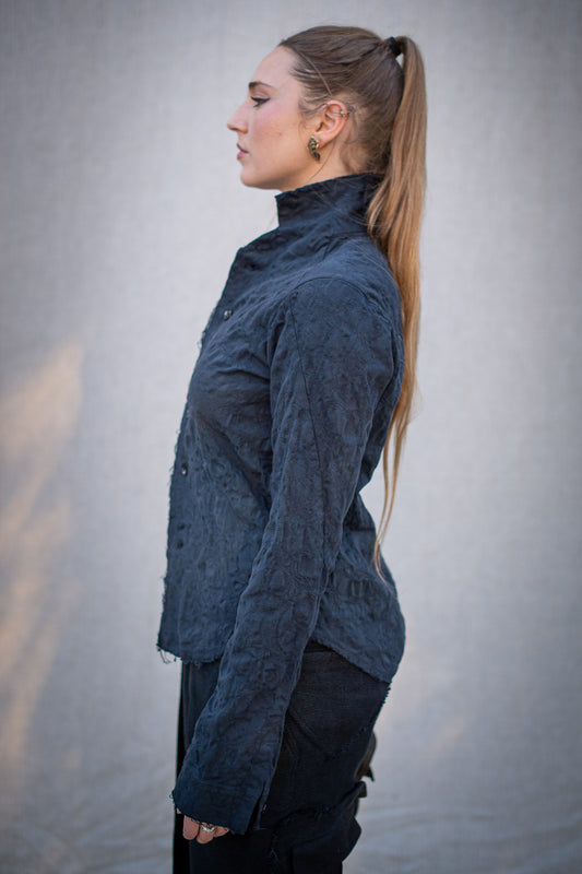 FW24 || PROTOLOGICAL ARCHETYPE SHIRT || BLACK STRETCH BROCADE