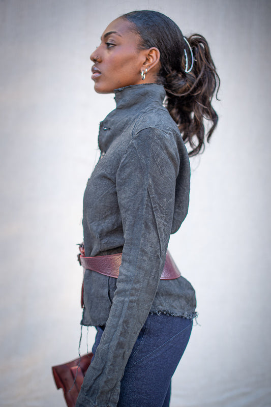 FW24 || PIPED SEAM HIGH NECK TOP || CHARCOAL INFUSED