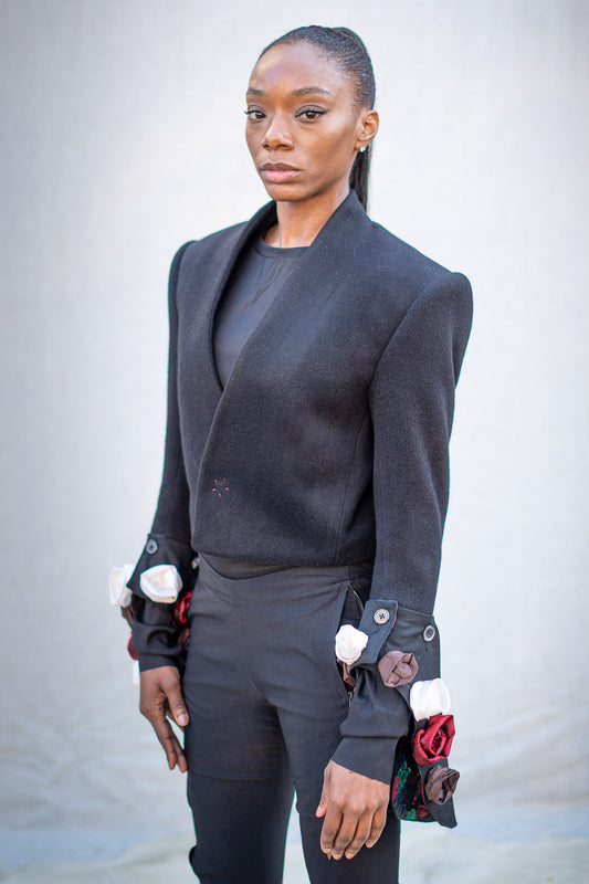 FW24 || PROTOLOGICAL ARCHETYPE BLAZER || BLACK LINEN BROCADE