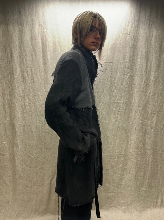 FW24 || PROTOLOGICAL ARCHETYPE SILK SEAMED SHIRT JACKET || GREY SILK