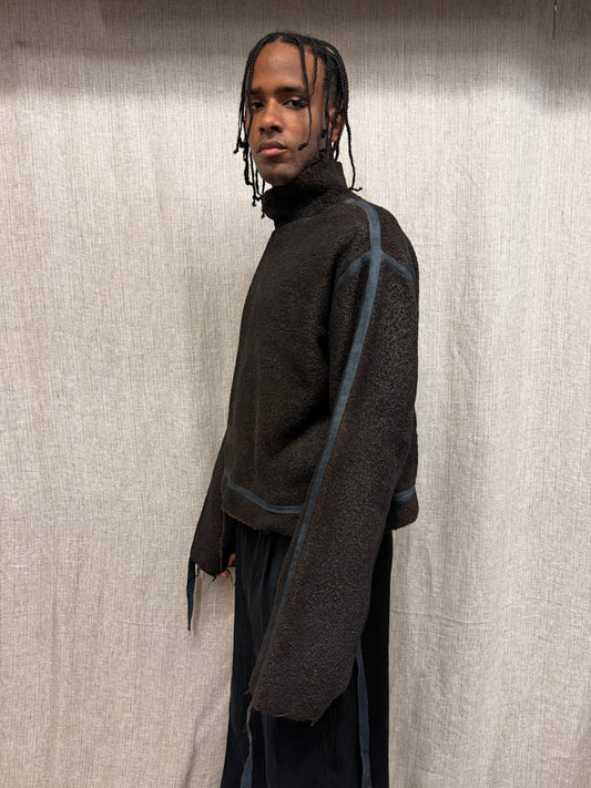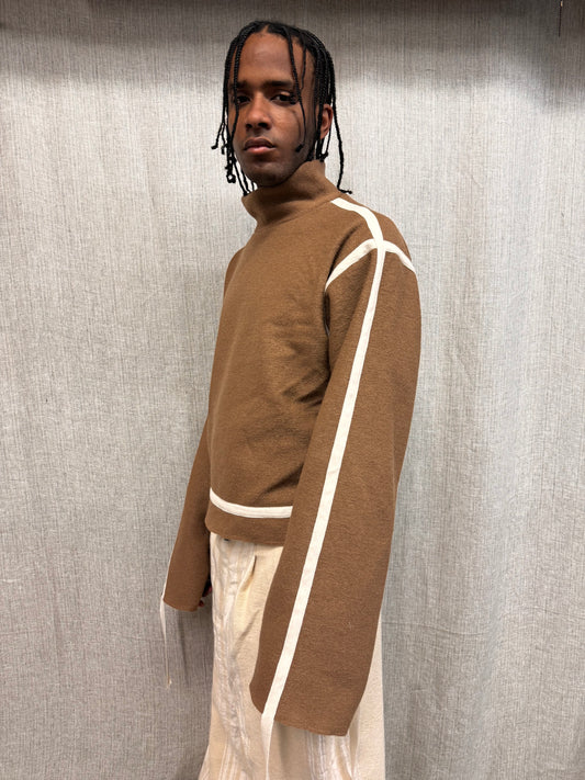 FW24 || PIPED SEAM HIGH NECK TOP || TAN WOOL