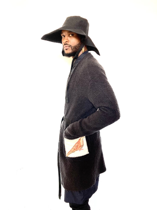 KNG13 || BIRD HUNTING BOILED WOOL LONG CARDIGAN || BLACK
