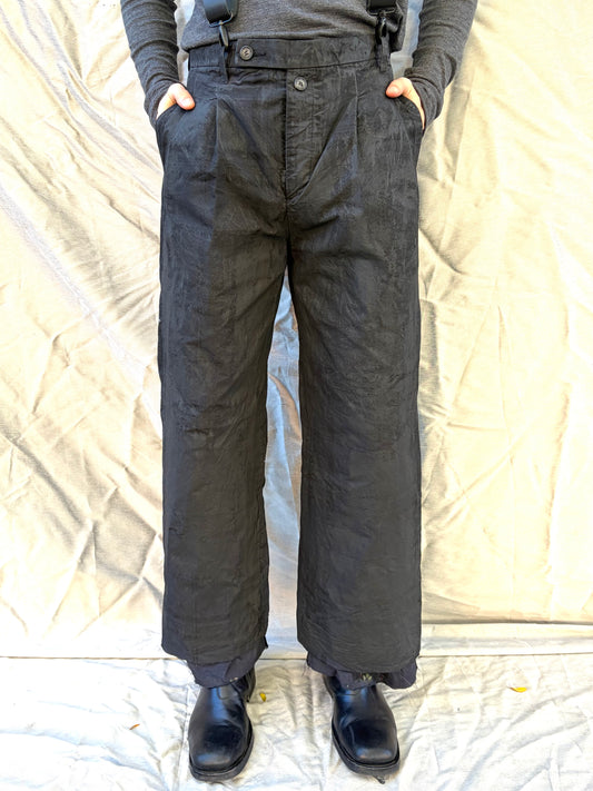 FW25 ||CLASSIC PLEATED GODDE PANTS|| COTTON || CHARCOAL COATED BLACK