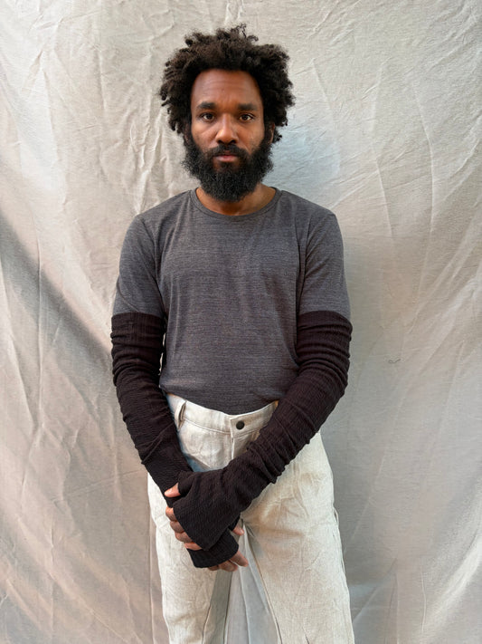 FW25 || OVERLOCKED LONG ARM GAUNTLETS || LEATHER + WOOL BLEND