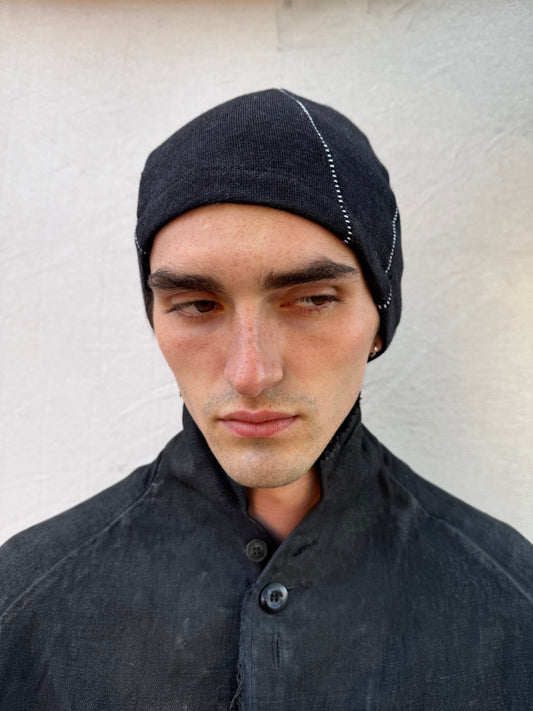 FW25 || TRIANGULAR PANEL BEANIE || OVERLOCKED || BLACK ON BLACK