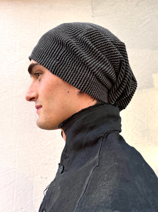 FW25 || LONG DOME BEANIE ||GREY -GREY TEXTURED STRIPE