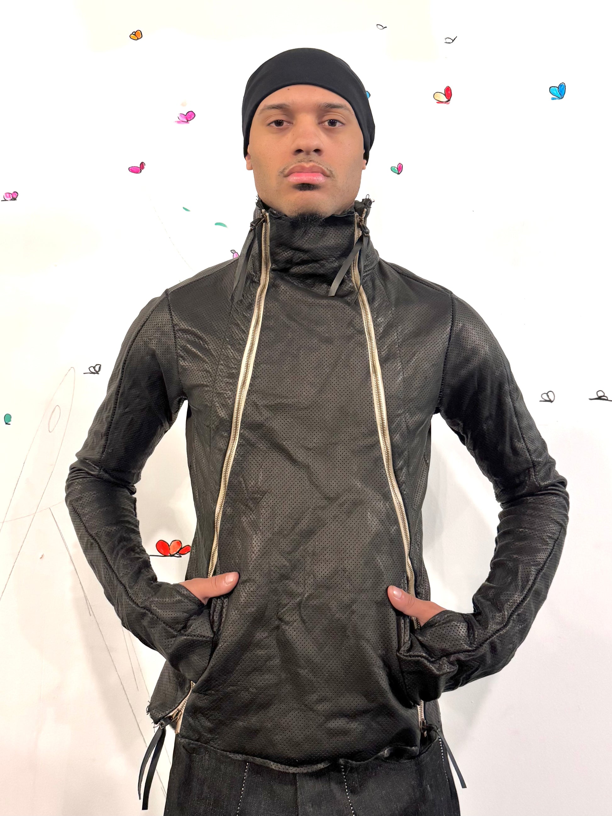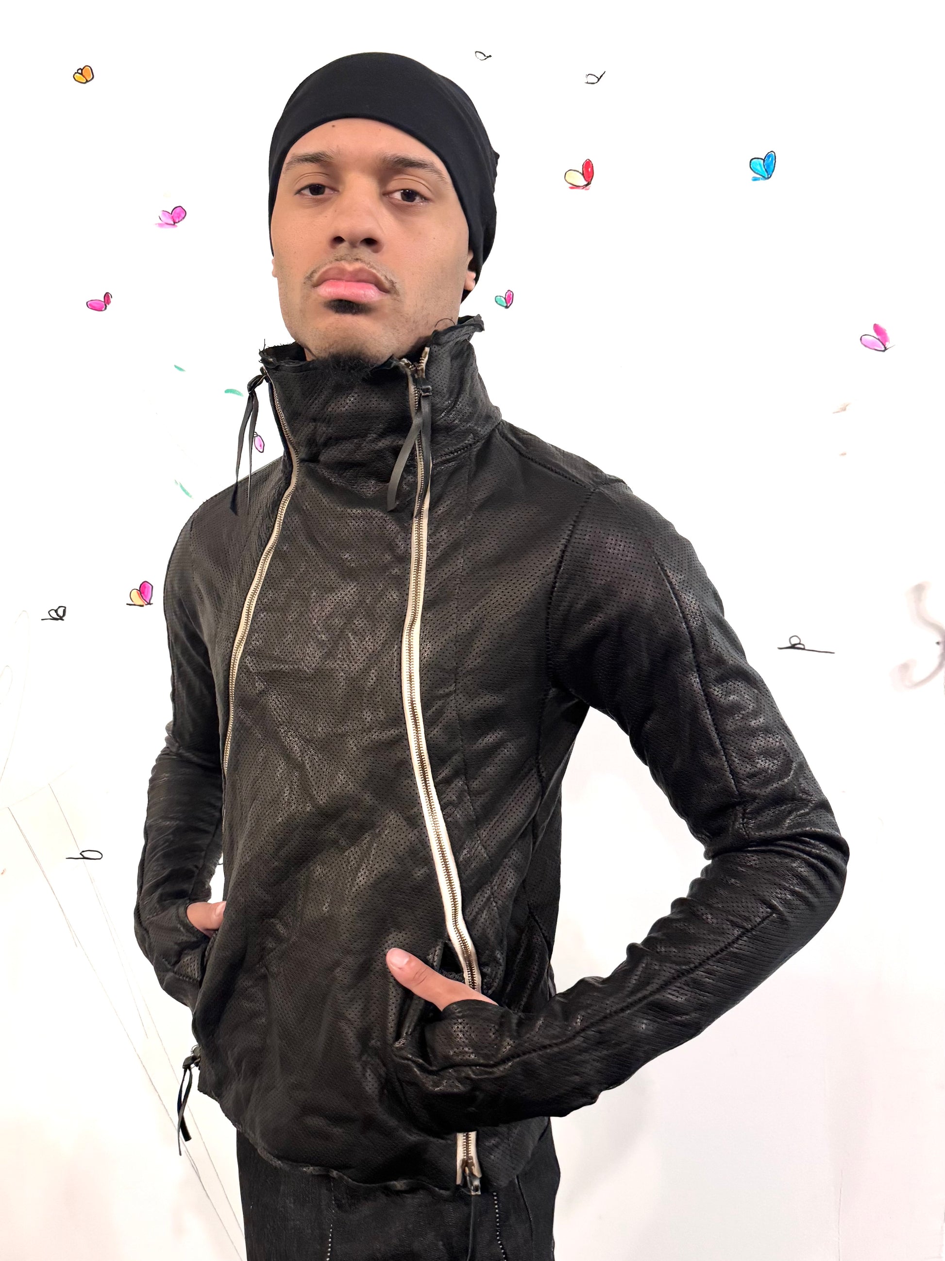 SS26 || PREFORATED TYPE III HIGH NECK JACKET|| CALFHIDE + COTTON