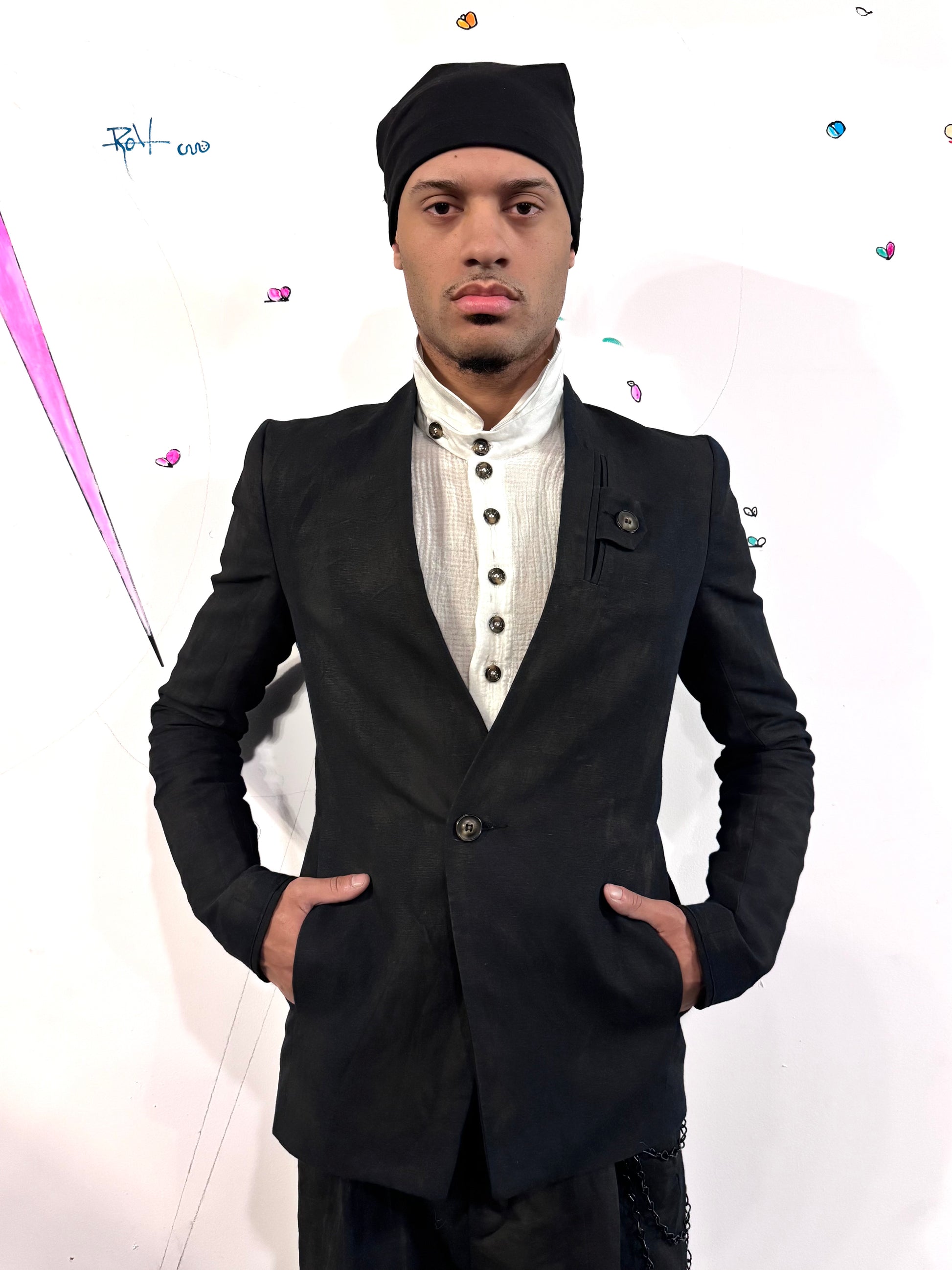 The Shawl Collar "Zagoda" Blazer is a tailored blazer for a customer who wants a high quality, well constructed blazer with a very minimalist feel. the blazer has two side pockets that is cut into the seam, is fully lined with two inner chest pockets - the "Zagoda" variant of the blazer has a newly constructed 'pronounced" shoulder line, single upper welt chest pocket. Made with high quality 50% Cotton / 50% linen fabric that is perfect for the Warmer Spring Summer Months