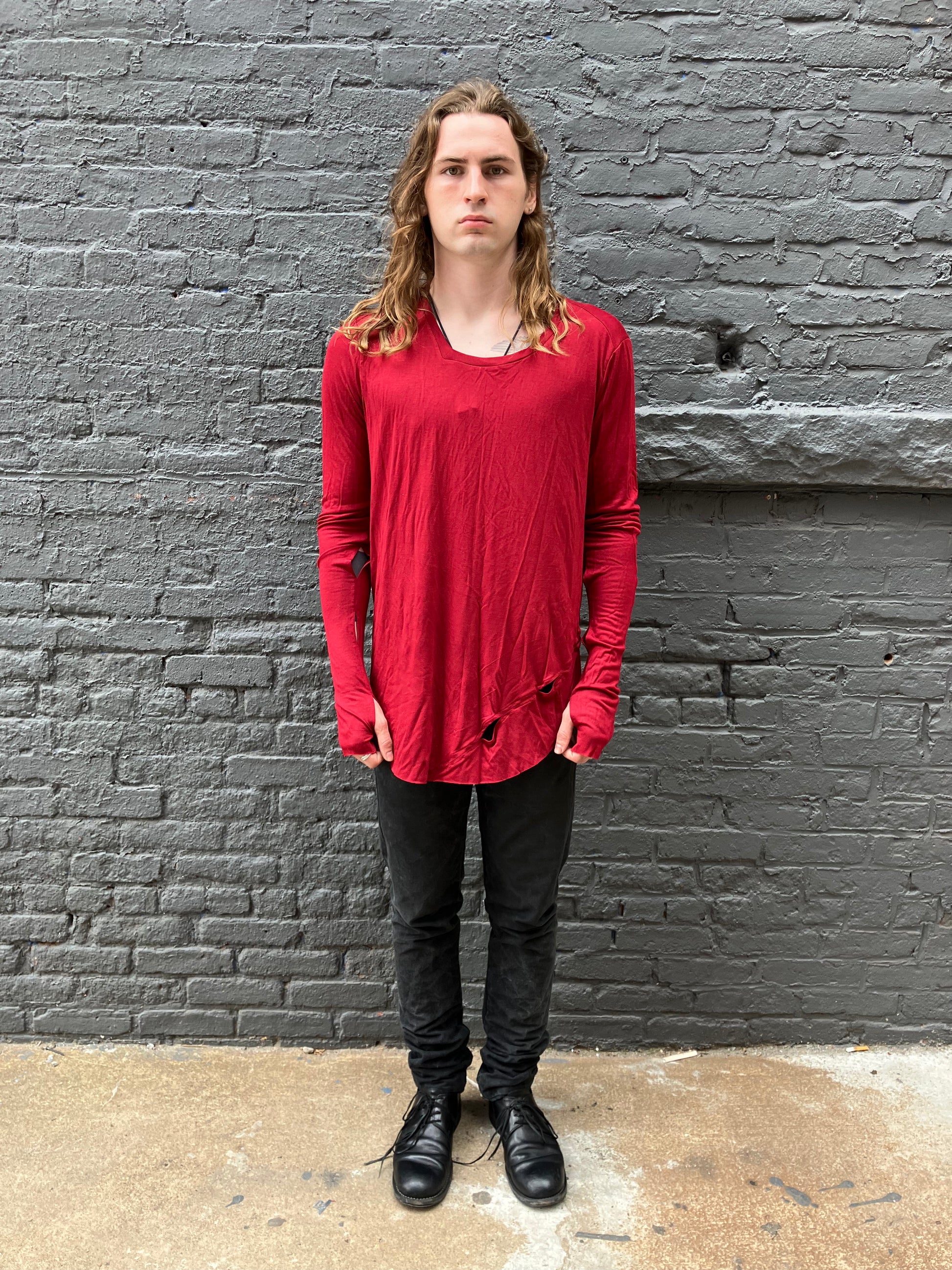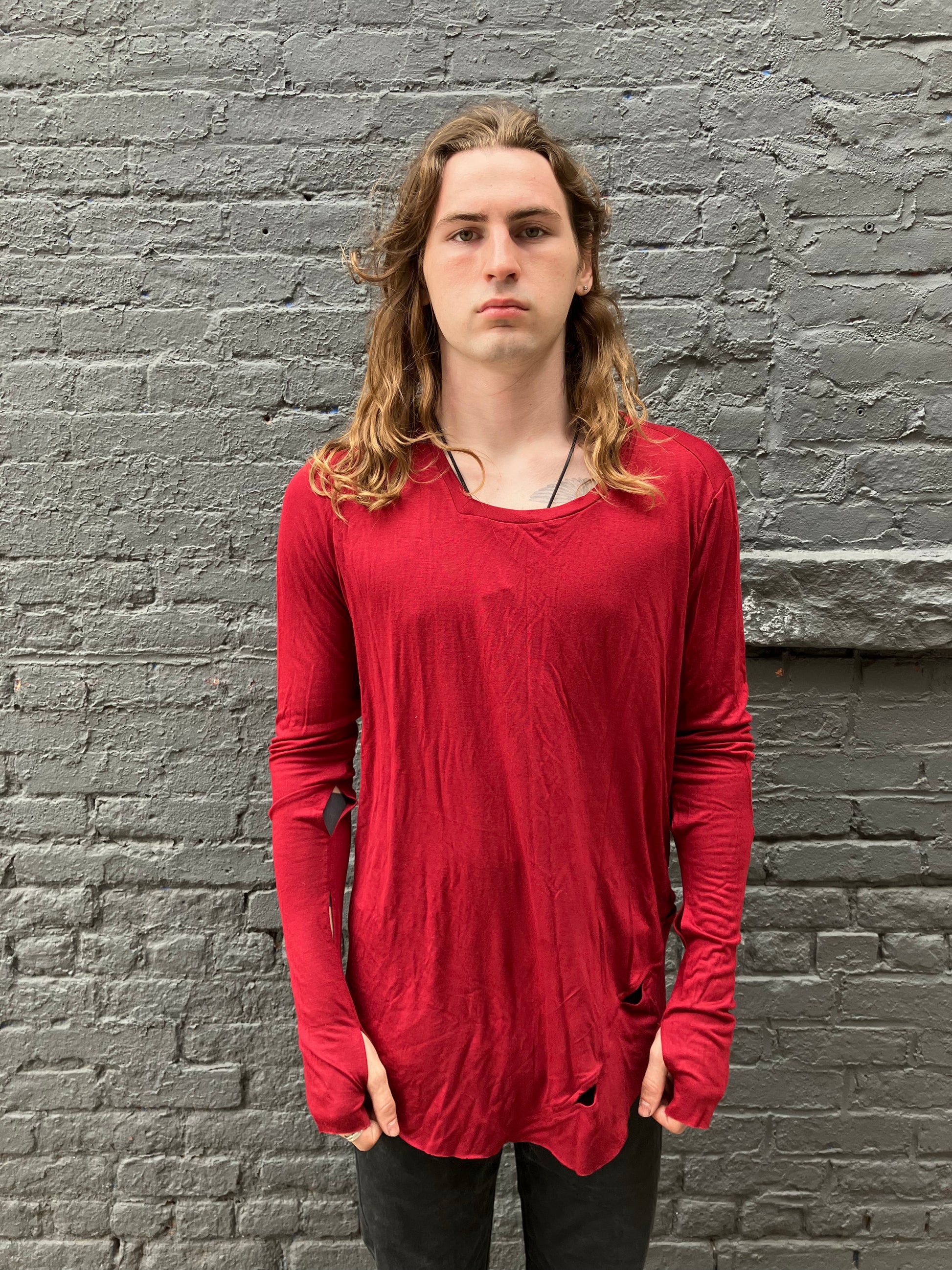 ZBT SS || ASSYMETRIC V-NECK OPEN LS TOP || RED