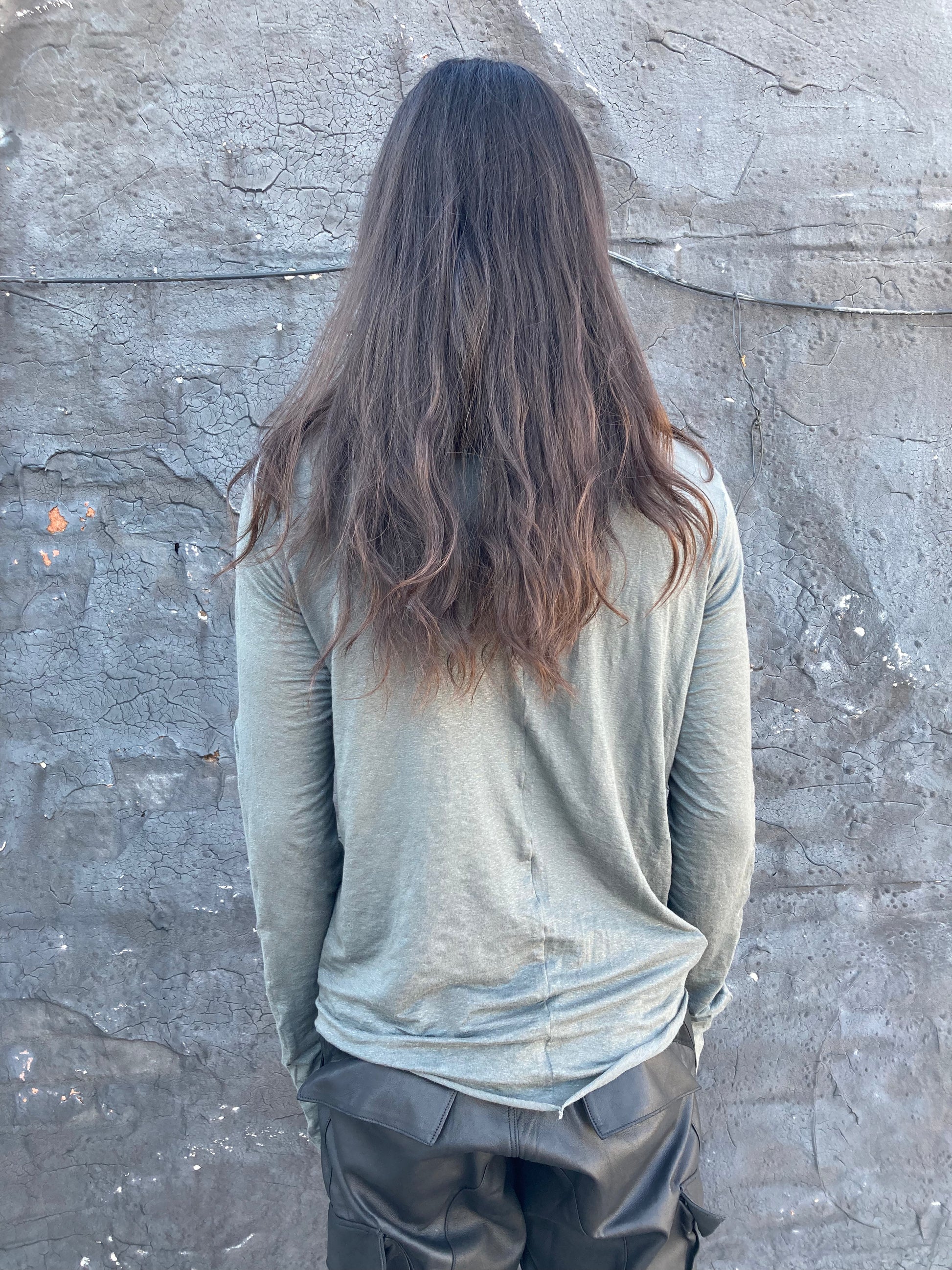 ZBT FW || ASSYMETRIC V-NECK OPEN LS TOP || GREY
