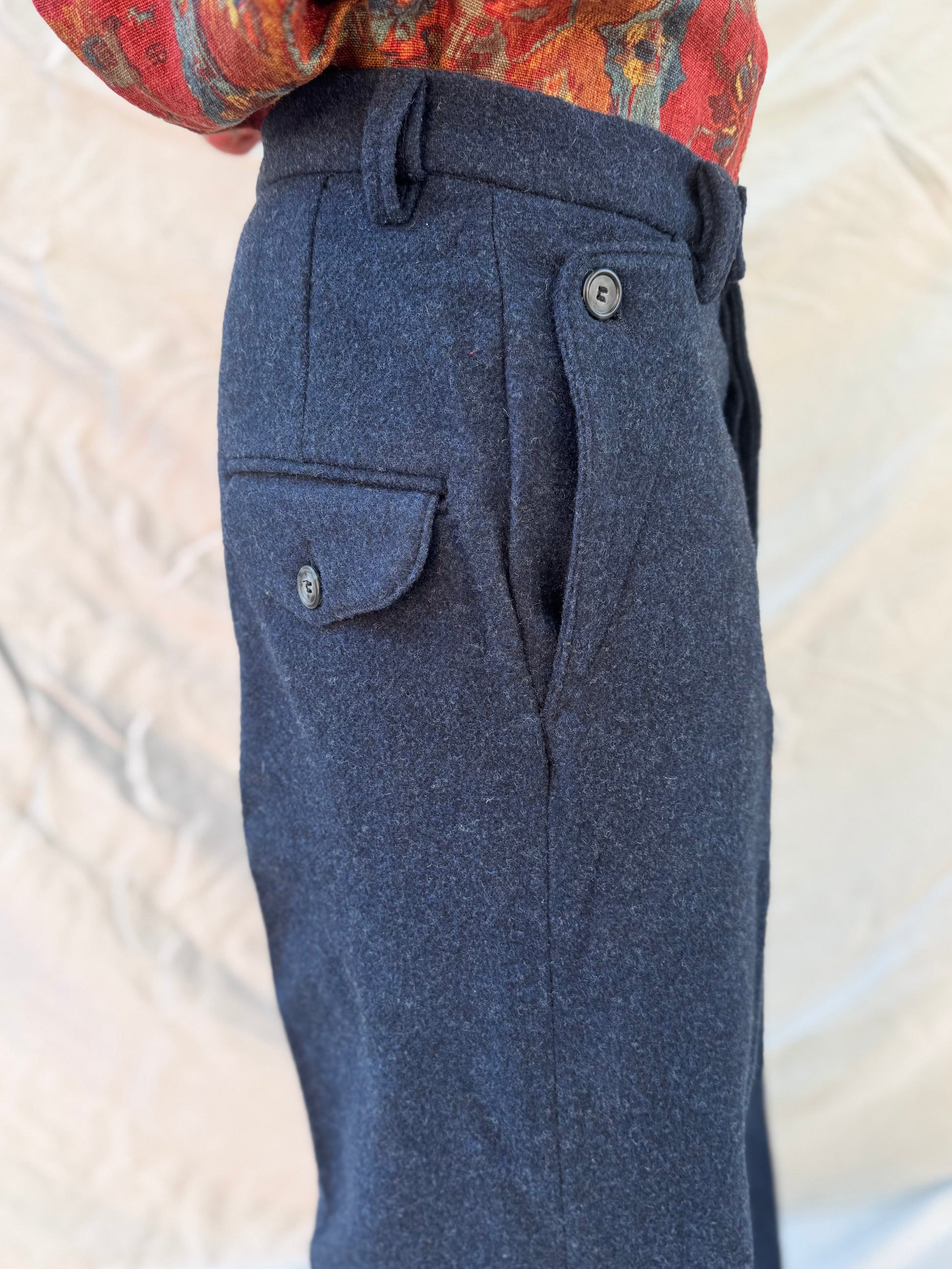 FW25 ||BUTTON POCKET GODDE PANTS|| 100% WOOL - MIDNIGHT