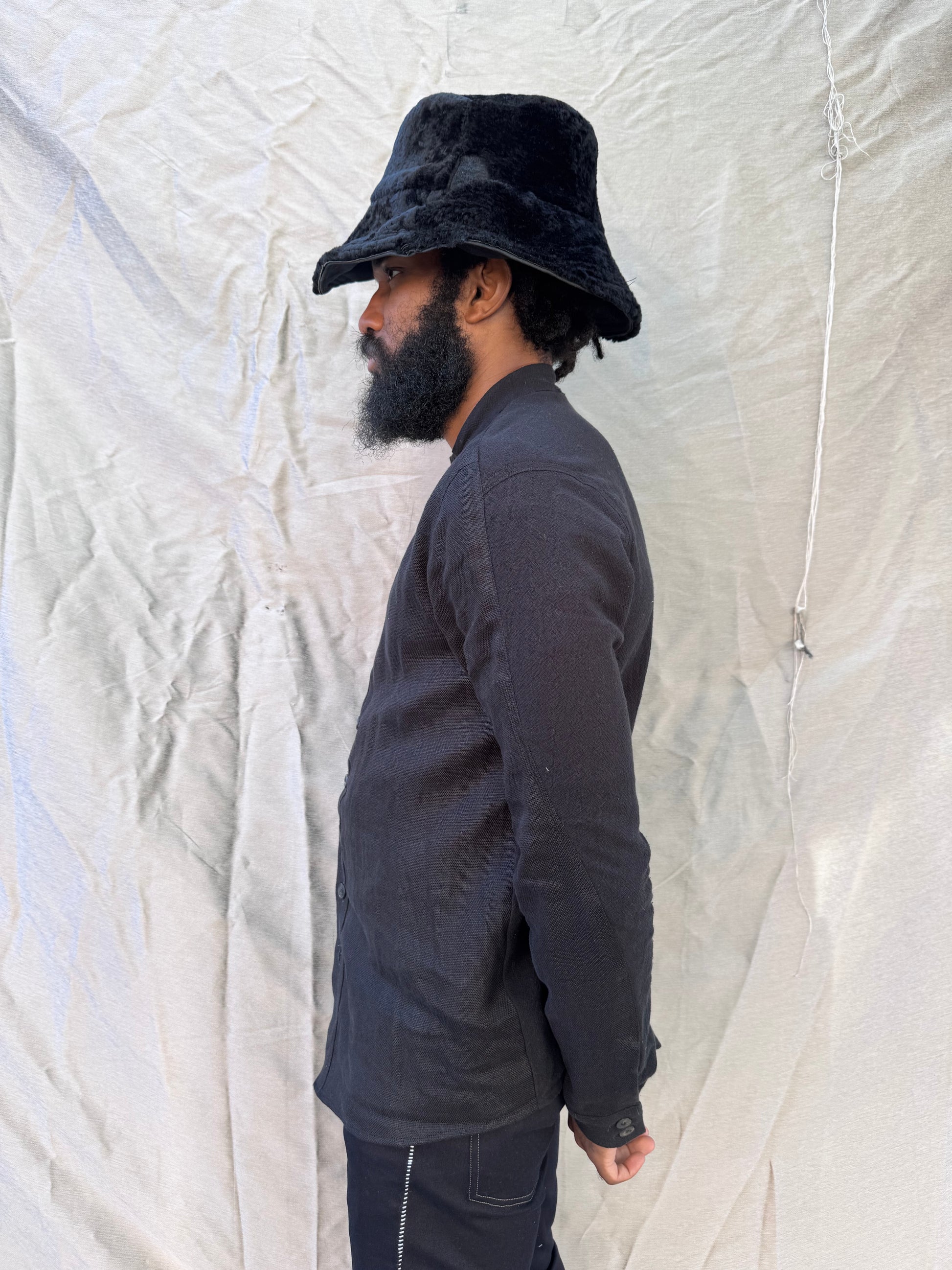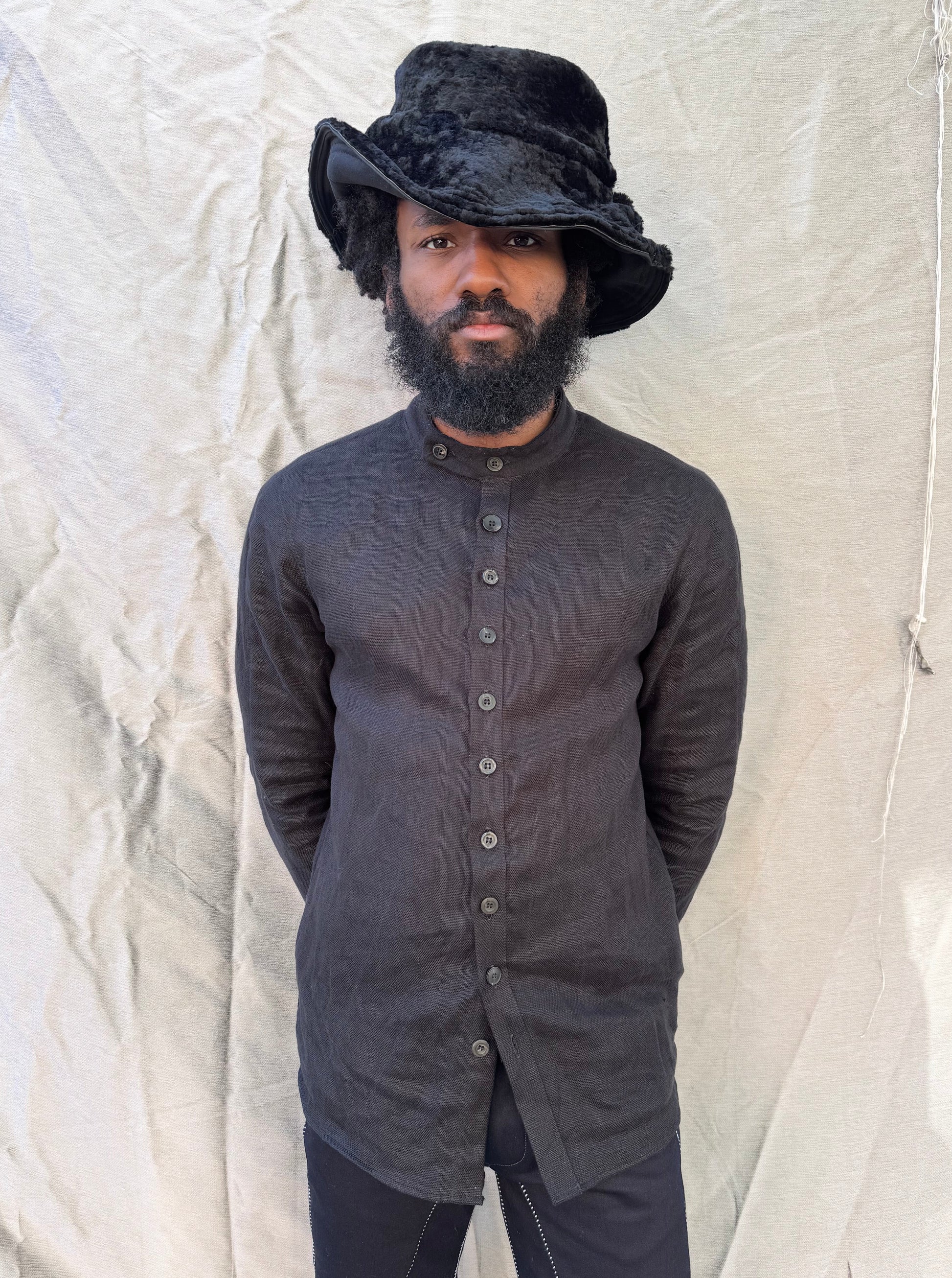 FW25 || FAULTED SHOULDER .5 CLASSIC SHIRT|| LINEN + COTTON || BLACK