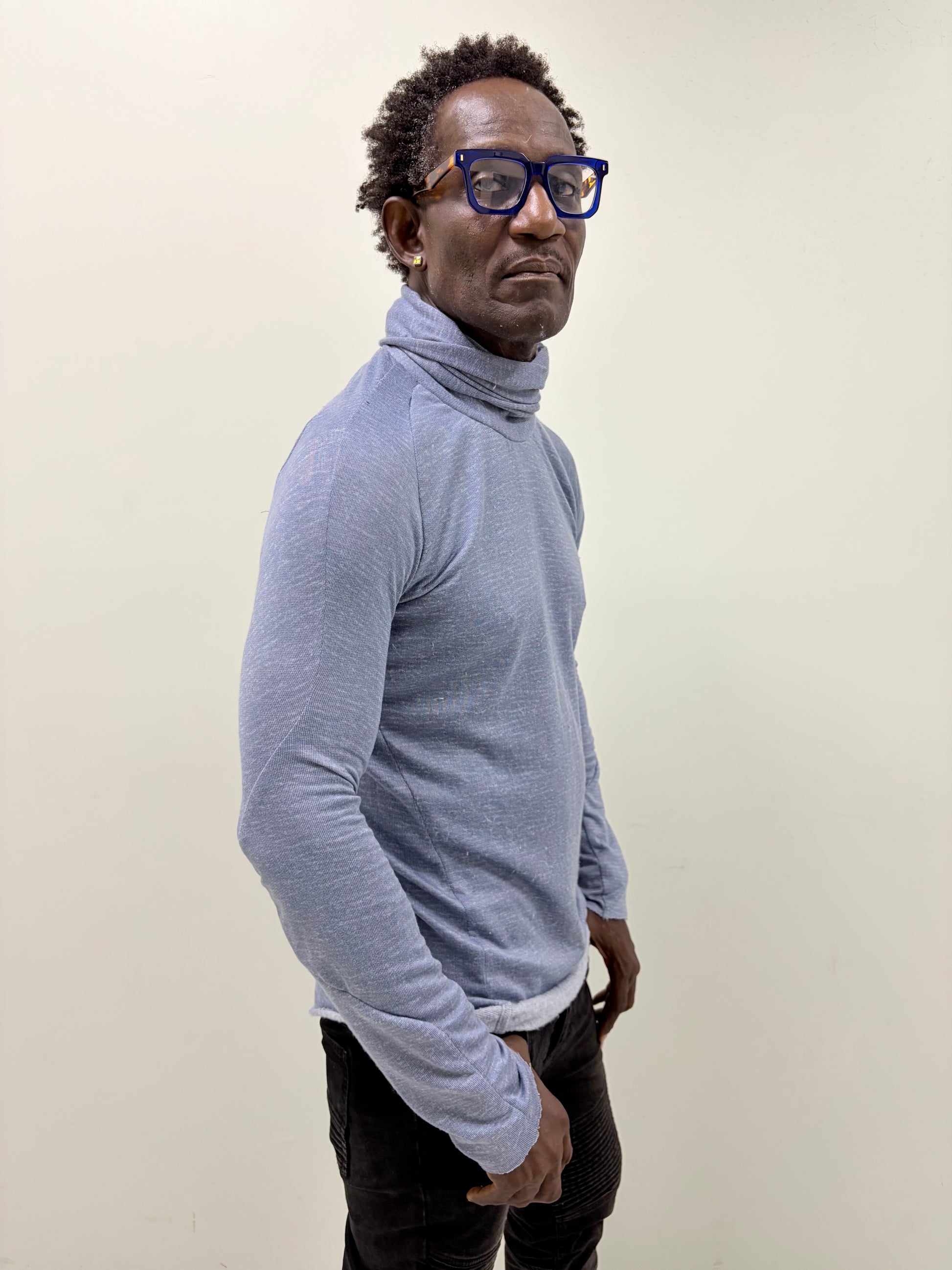 FW25 ||HIGH NECK RAGLAN TOP || SILK + COTTON|| SEA GREY