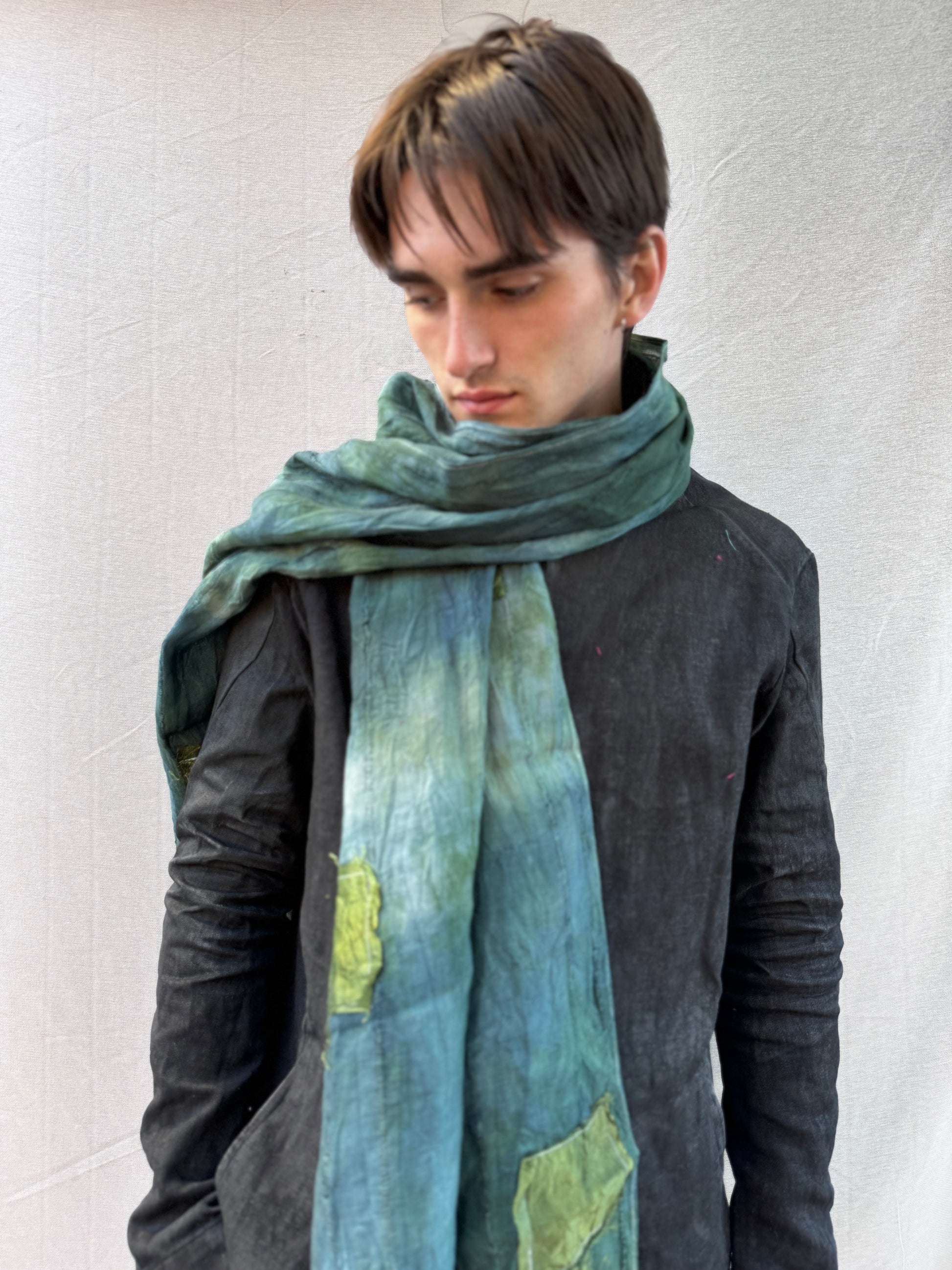 FW25 || SILK PATCHWORK LINEN SCARF || OD GREEN