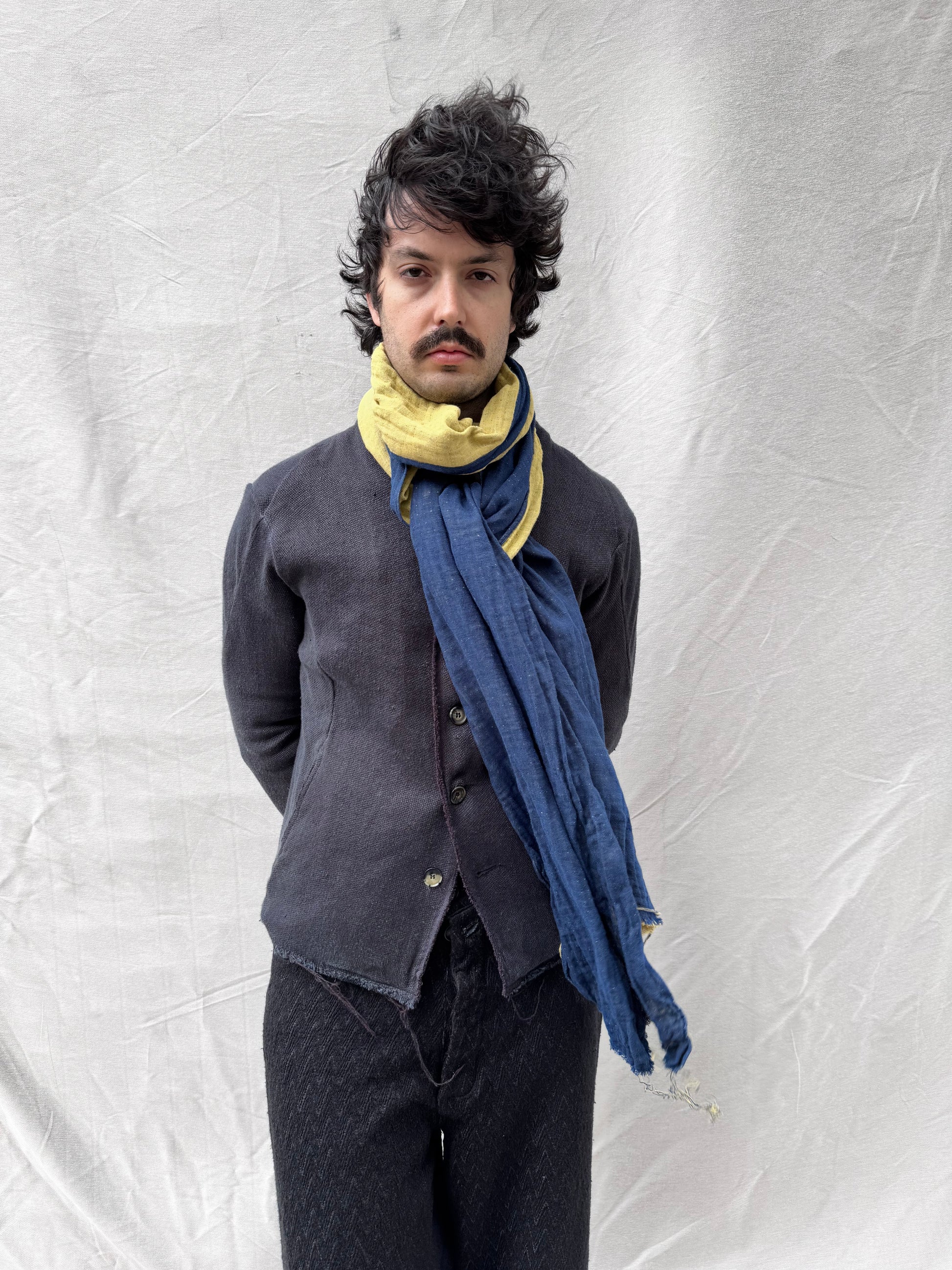 FW25 || WASHED LINEN SLIM DOUBLE PLY SCARF || BLUE